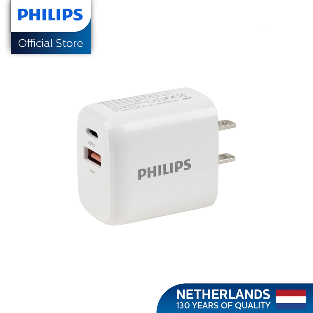 Philips 25Watts Fast Wall Charger with USB-C and USB-A Port Wall Charger